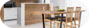 Описание Двух уровневая кухня, фасады пластик белый глянец еггер. Столешница еггер дуб гладстоун, ручки алюминиевые GOLA белые, фурнитура blum GTV.